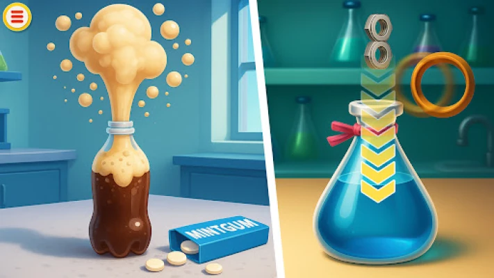 Svaki izazov u Chemistry Science Experiments počinje jasnim pregledom cilja, potrebnih materijala i očekivanog ishoda. Nakon završetka, kratka objašnjenja otkrivaju nauku koja stoji iza svake reakcije, čineći igru ne samo zabavnom, već i mentalno stimulativnom. Otkrijte šarene plamene efekte, naučite kako očistiti bakar u kućnim uslovima, izvedite trikove sa balonima, napravite sopstveni kućni „aparat za gašenje" ili istražite neočekivane magnetne interakcije sa namirnicama. Bilo da volite učenje kroz otkrivanje, "uradi sam" projekte ili zadatke slične zagonetkama, Chemistry Science Experiments nudi savršen spoj radoznalosti i kreativnosti, vizuelno je privlačan i pruža osećaj postignuća pri svakoj uspešnoj reakciji.