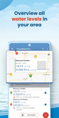 FloodAlert vam pruža sve aktuelne nivoe vode i prognoze na jednom mestu. Pouzdano vas upozorava na opasne situacije čim nivo vode dostigne kritično stanje. Delujte rano i preduzmite preventivne mere protiv poplava.