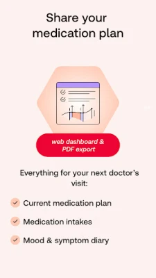 MyTherapy vam omogućava da lako generišete detaljne izveštaje u PDF formatu, koje možete podeliti sa svojim lekarom, pružajući jasan pregled vašeg napretka i pridržavanja terapije. Motivacija je ključna, pa aplikacija svakodnevno nudi inspirativne slike koje podstiču doslednost. Bilo da se oporavljate od moždanog udara, lečite karcinom, borite se sa hipertenzijom ili jednostavno želite pažljivije da nadgledate svoje zdravlje, MyTherapy donosi spokoj i sigurnost u svakodnevnoj rutini. Posvećeni smo kontinuiranom usavršavanju MyTherapy aplikacije i pozivamo vas da podelite svoje ideje i povratne informacije kako bismo je učinili još boljom za sve korisnike.