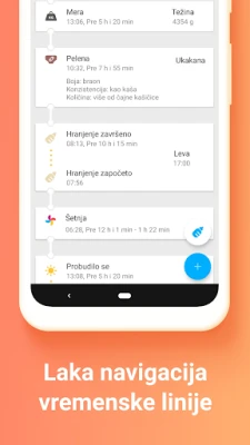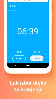 Iskustvo korišćenja je izuzetno jednostavno: samo jednim dodirom započinjete praćenje aktivnosti. Dostupan je praktičan tajmer za dojenje i spavanje, sa opcijama lakog zaustavljanja i ponovnog pokretanja, a za brzi pristup možete ga prikazati u traci sa obaveštenjima. Nikada više ne propustite važan događaj zahvaljujući podsetnicima koje možete postaviti za svaku aktivnost – periodične i prilagodljive vašim potrebama. Ako brinete o više beba, uključujući blizance, aplikacija podržava praćenje aktivnosti za svaku pojedinačno. Vaši komentari i predlozi su nam dragoceni; pošaljite nam ih putem imejla i mi ćemo ih primeniti što je pre moguće kako bismo neprestano unapređivali vaše iskustvo.