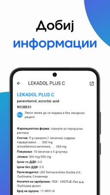 Sa ovom aplikacijom, dobijate sveobuhvatan pregled dostupnih lekova, uključujući osnovne detalje, kako biste uvek znali šta vam je potrebno. Pored toga, pruža vam ažurne informacije o apotekama širom zemlje, omogućavajući vam da brzo locirate najbližu dežurnu apoteku ili onu koja ima traženi lek na stanju. Podaci su pažljivo prikupljeni sa zvanične veb stranice makedonskog registra – lekovi.zdravstvo.gov.mk – osiguravajući vam pouzdanost i tačnost svake informacije. Naš cilj je da vam pružimo mir i sigurnost znajući da se oslanjate na verifikovane izvore.