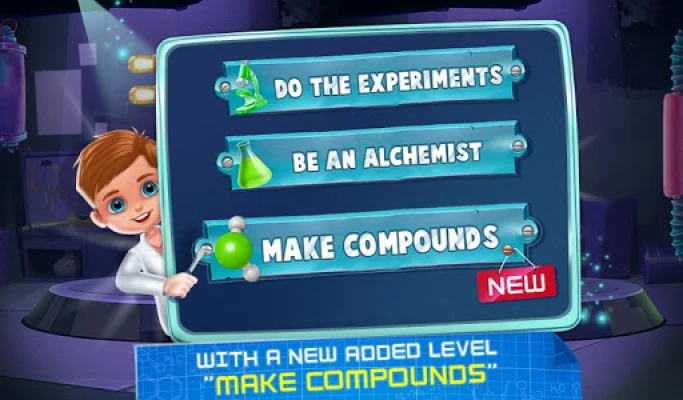 U sekciji "Izvođenje eksperimenata", sami ćete otkriti tajne prirode: kako krompir stvara struju, kako se ugljen-dioksid koristi kao sredstvo za gašenje požara, kako napraviti duginu kišu u kući ili simulirati vulkansku erupciju. Zatim, pređite na nivo "Budi alhemičar" gde mešate elemente, rešavate zagonetke stvaranja novih supstanci i otključavate skrivene kombinacije – uz opcije za poništavanje koraka i korisne savete. Konačno, u izazovnom nivo "Stvaranje jedinjenja", testiraćete svoje znanje molekularnih formula, sakupljajući prave molekule da biste formirali tražena jedinjenja, gde svaka greška može dovesti do neuspeha!